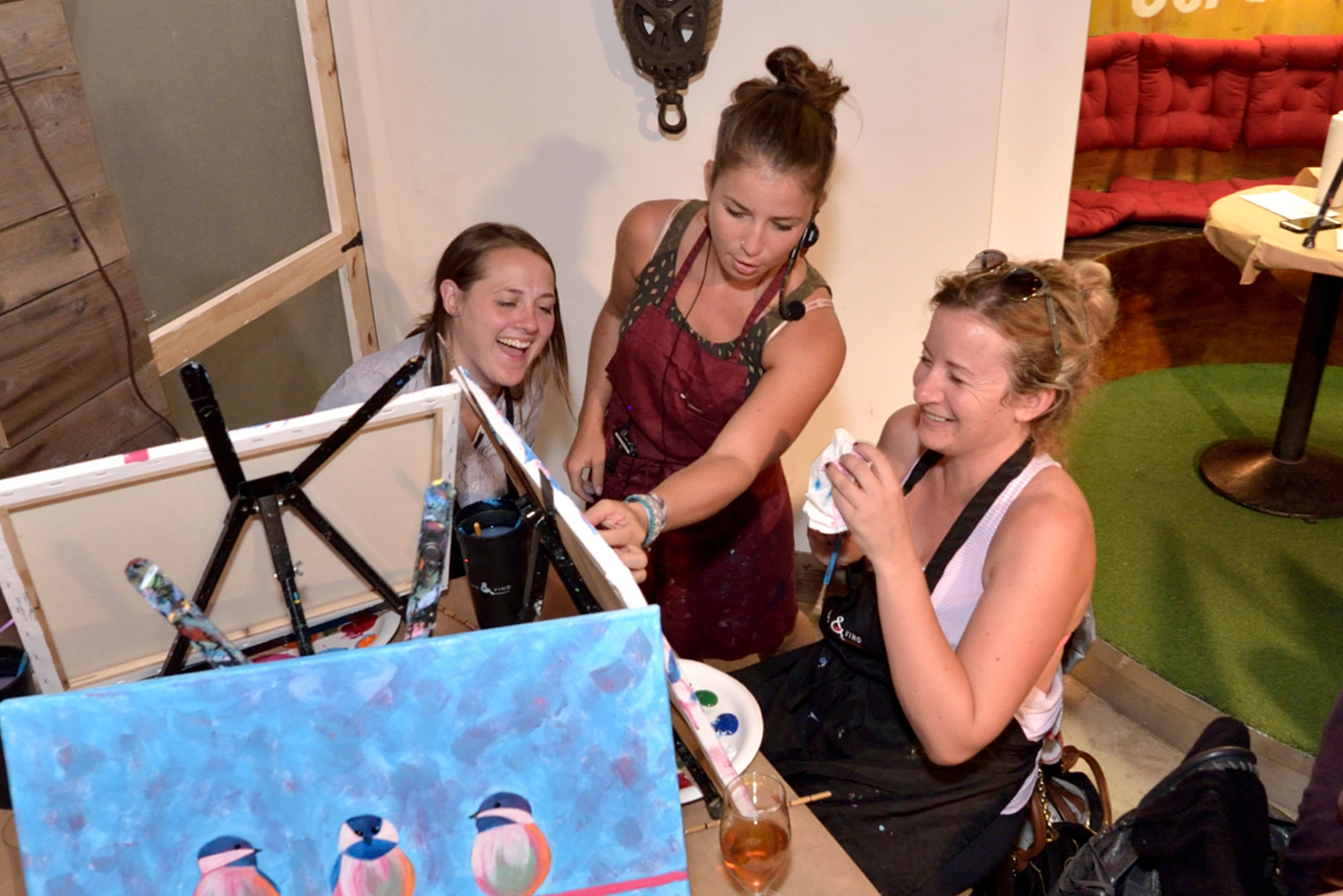 So what is a Painting & Vino class like? Our events offer a unique, fun and social introduction to creativity and art! We provide all necessary supplies for painting, while food and beverage are available for purchase separately through the venue. There is no experience required, so join us, and quench your thirst for creativity!